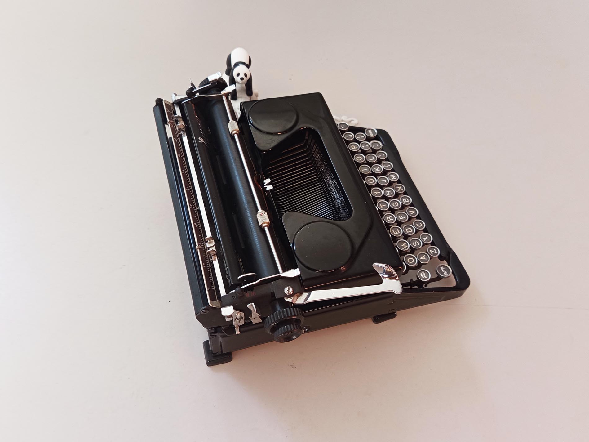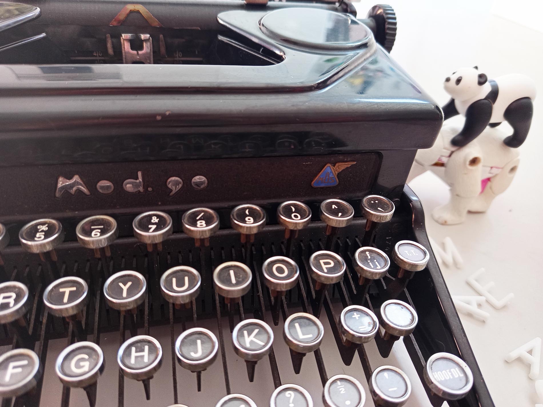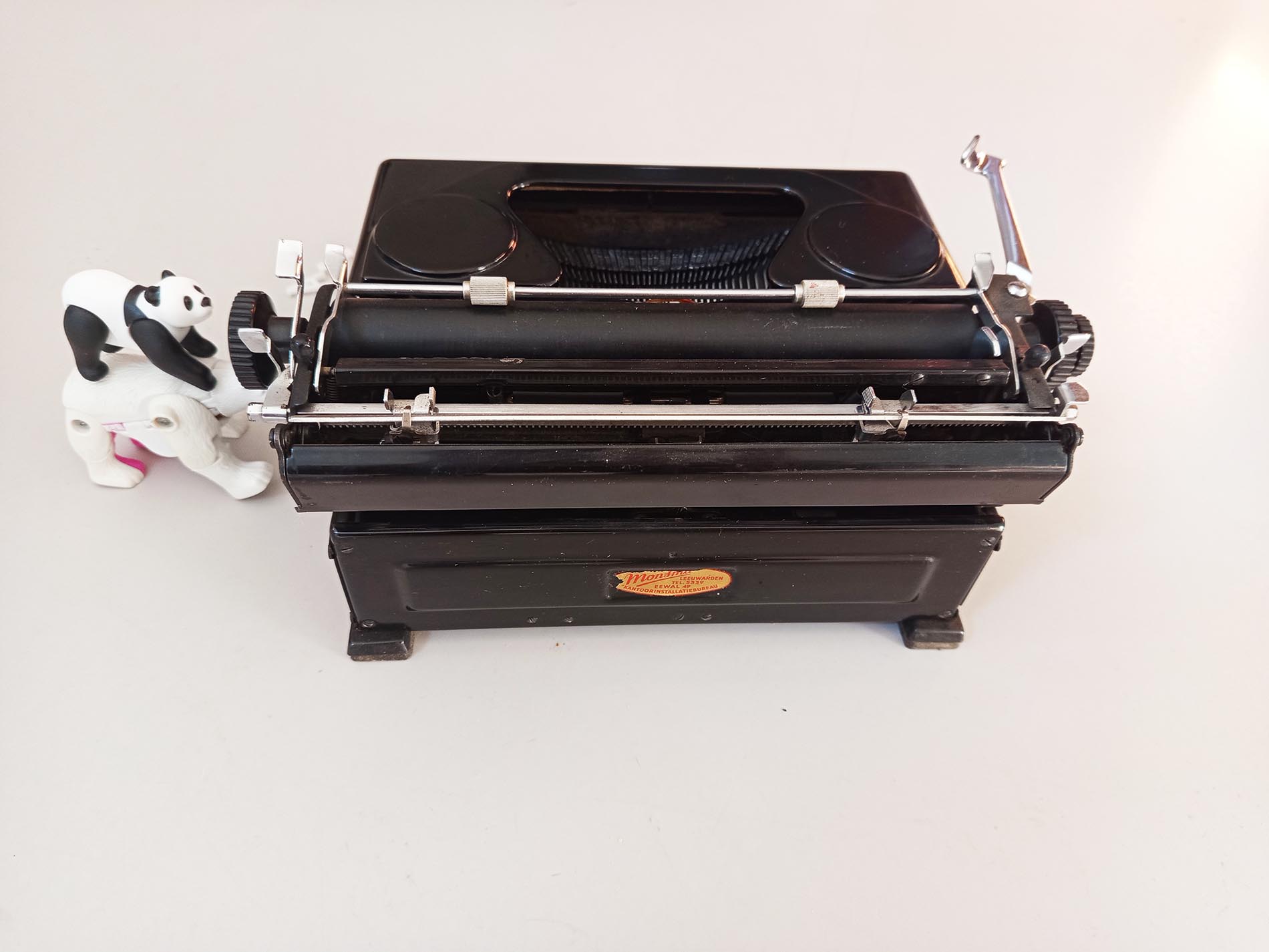 Oude stoere robuuste italiaanse Everest Mod.90 typemachine. Het is een ouder model met prachtige details zoals het sierlijke logo wat een prachtig lettertype heeft. Ook ziet de typemachine er nog zeer netjes uit. De typemachine is getest en is voorzien van nieuw lint maakt gebruik van een afwijkend spoeltje. Ook zal deze typemachine zeker niet misstaan in je interieur een mooi stukje eyecandy. Deze Everest is uitgerust met het geliefde Elite-lettertype, dat bekendstaat om zijn fijne, elegante en gelijkmatige letters – perfect voor creatief schrijfwerk, journaling of decoratief gebruik. Een karaktervol stuk met authentieke uitstraling, ideaal voor liefhebbers van vintage, schrijfmachines en unieke interieuritems