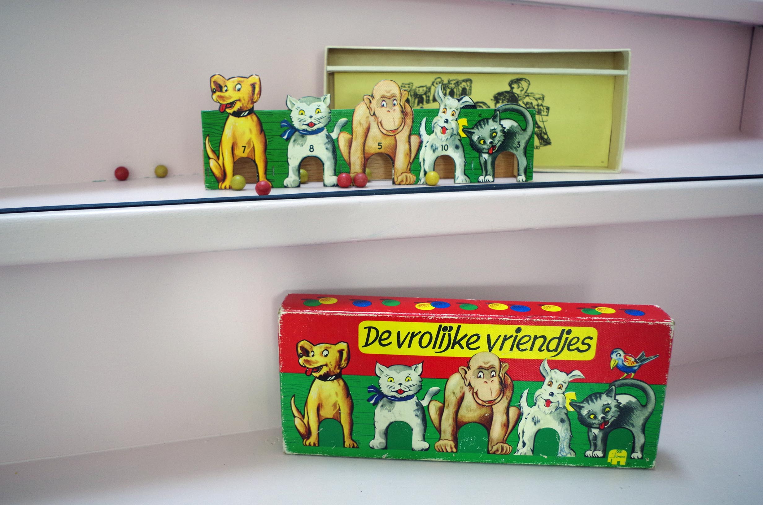 Een vrolijke vriendjes knikkerwerp spel van jumbo no.122. Nog goede staat compleet met de originele gebakken rood en gele knikkers. Zelfs de originele afbeelding erbij met daarbij de enige regel. Verpakking is in iets mindere staat met de name de hoeken en randjes.
