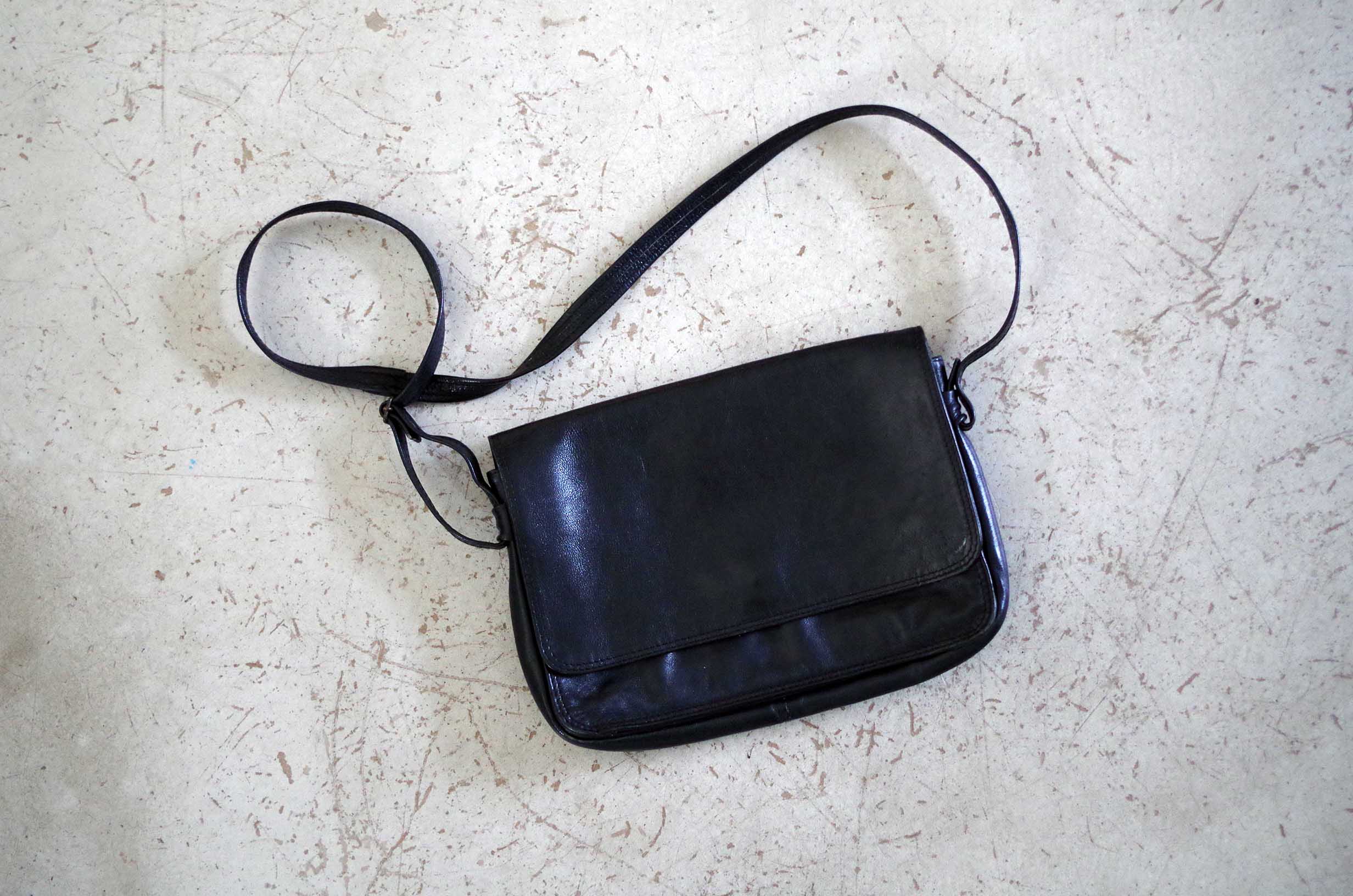 vintage simpele maar mooie zwarte lederen schoudertas. Het is een tas van het merk La Moda.