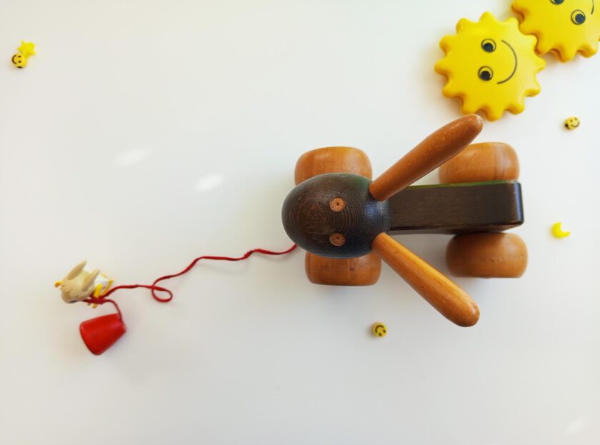 Vintage houten trekdier. Een prachtig konijntje nog in perfecte staat. ( touwtje is wat kort)