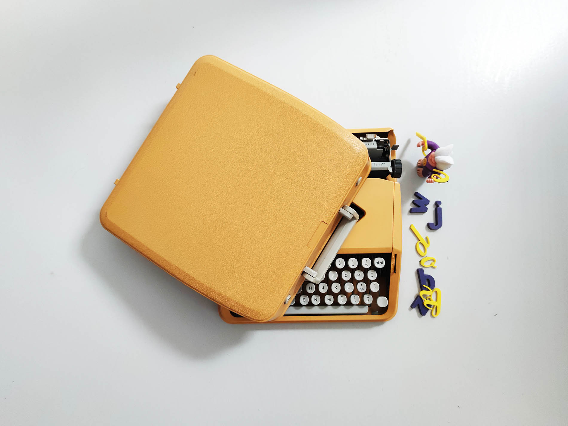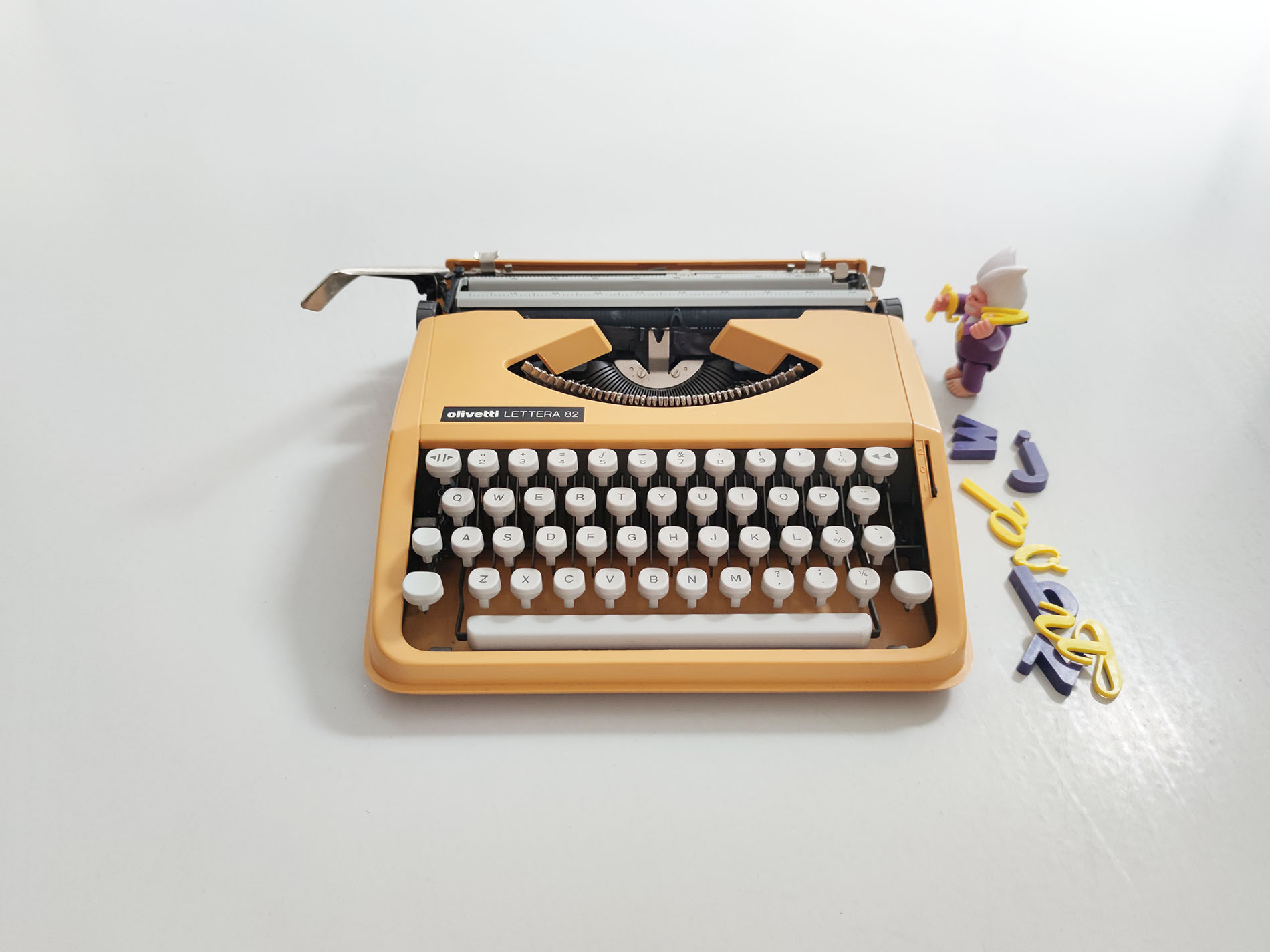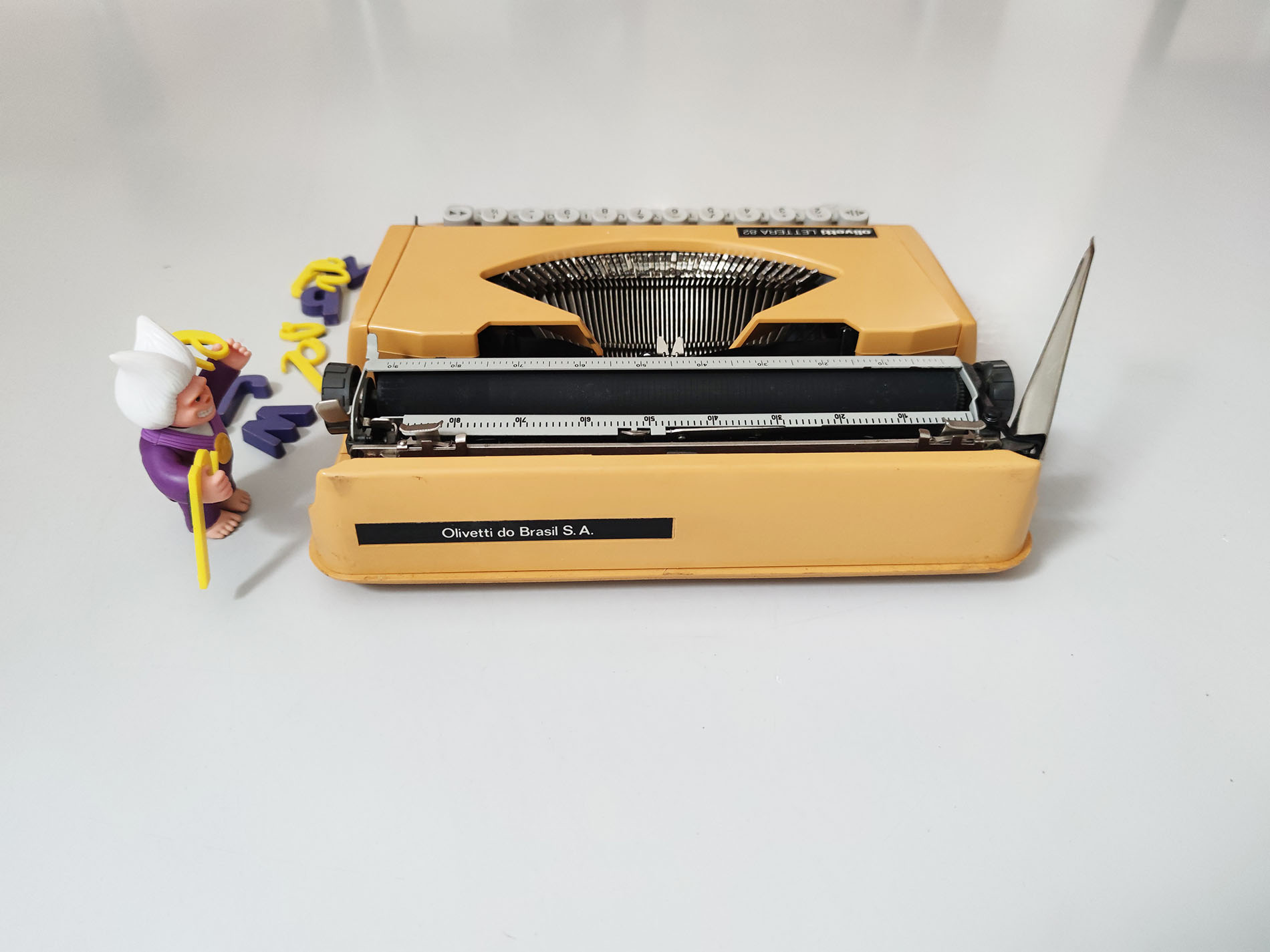 Vintage Olivetti lettera 82 in een mosterdgele oker kleur. Het is een uniek model met een mooie kleur het is een model wat je ook niet vaak tegenkomt en zeker niet in deze kleur. Deze typemachine ziet er nog netjes uit. De typemachine is getest en voorzien van nieuw lint. Het is een zeer fijn model om op te werken typt soepel en is zeker een ultieme favoriet. Olivetti maakt wel gebruik van een afwijkende spoelmaat maar wel is het lint altijd over te zetten op de spoeltjes die er in zitten. De typemachine is op te bergen met bijpassende deksel maar past ook zeker mooi in het interieur.