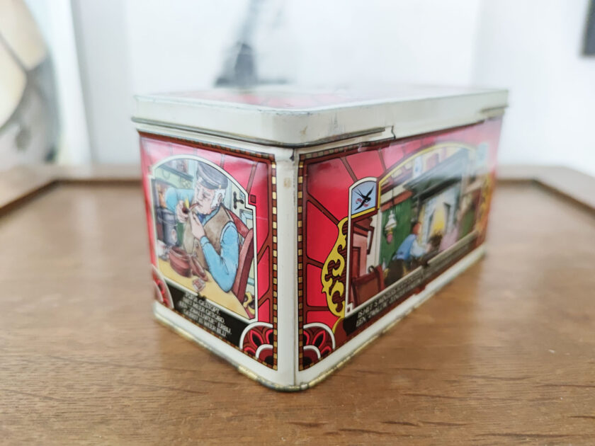 Vintage zwaluw blik. Alle zijden hebben een ander illustratie.